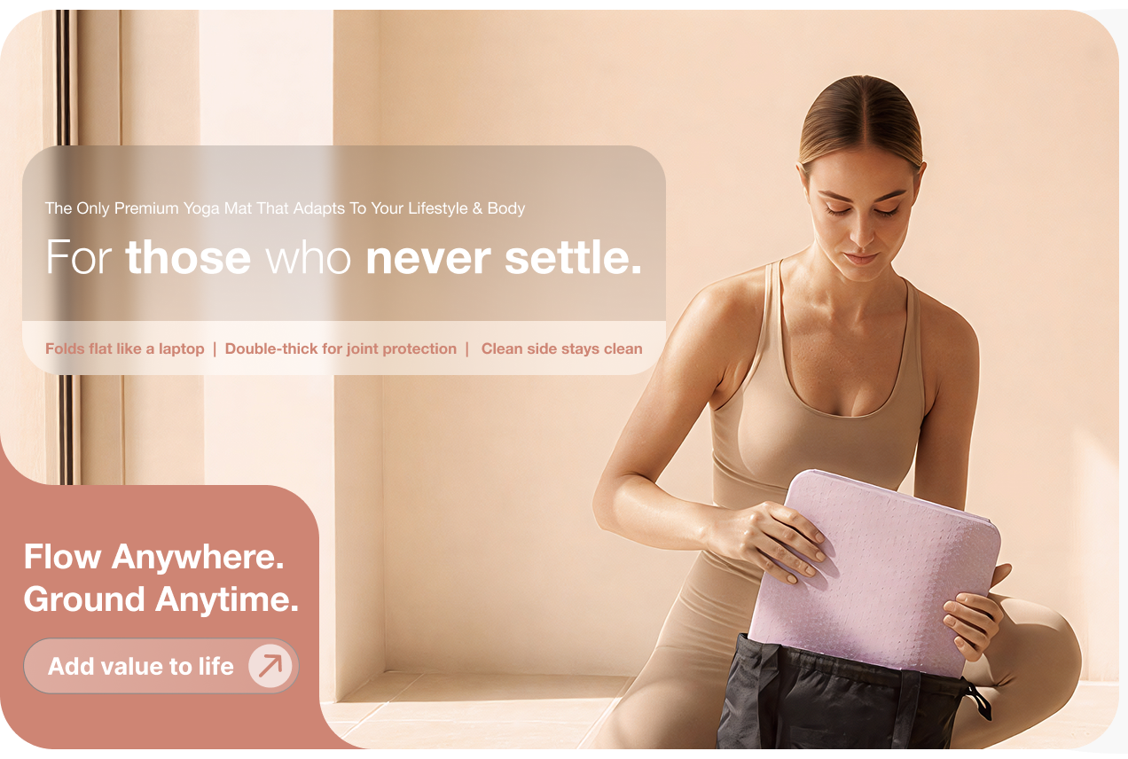 "I love my Fold2Flow mat! it's super lightweight and folds perfectly into my bag, making it easy to take anywhere. The grip and cushioning are excellent, giving me the perfect balance of support and stability during my practice. Highly recommend for yogis on the go!"